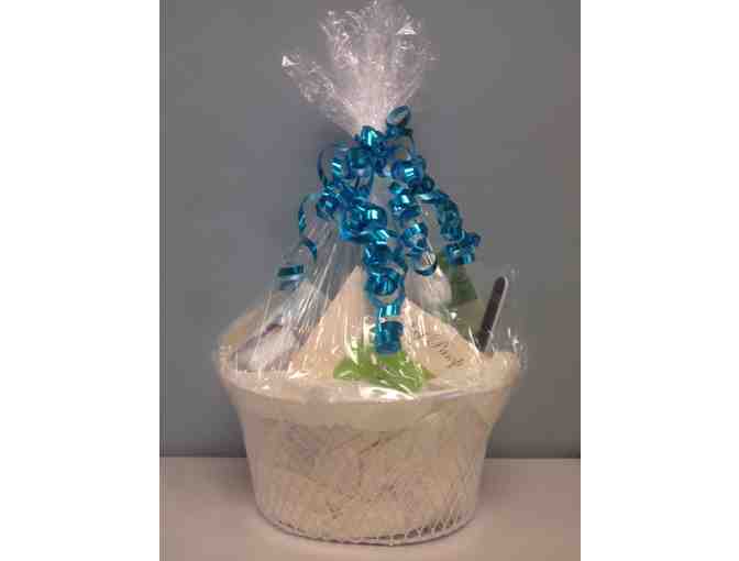 Ladies, pamper yourself with this basket of personal and nail care items. Black Cherry & Nutmeg hand and body lotion, Euro Centrale collection by OPI Mini nail lacquers, Pedi-sox (and more) with a manicure and pedicure gift card.