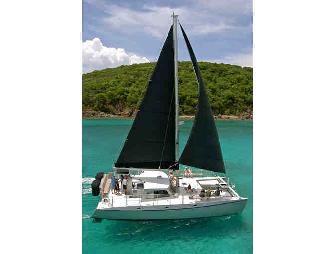 About Kekoa: This 50' wooden catamaran was built in 2008 and has unique silver hulls, black sails and a deck that glows blue at night. She is 30 ft. wide providing for a smooth and level ride while enjoying gentle trade wind sailing. The vessel has ample seating on the deck or in our shaded cockpit. She also has a wet bar, a bathroom and seating that stretches across the entire stern deck. Please come aboard and enjoy the newest, sleekest and most awe-inspiring sailing catamaran in the Virgin Islands. Please contact us to arrange the date of your sail. 340-244-7245 email: sailkekoa@gmail.com