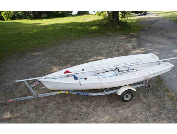 At 14', with a wide beam and self-bailing drain, this is a great daysailer for 2 - 3 people. It is in very good condition and comes with its own trailer.