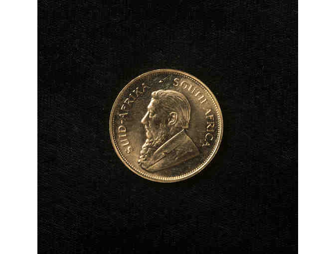 This South African Krugerrand 22-carat gold coin contains 1 troy ounce (31.1035 grams) of gold.