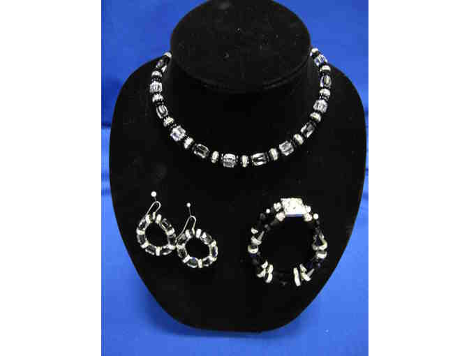 Los Angeles artist, Faith Porter designed and signed this beautifully crafted crystal and sterling silver 15" necklace with matching earrings and bracelet.