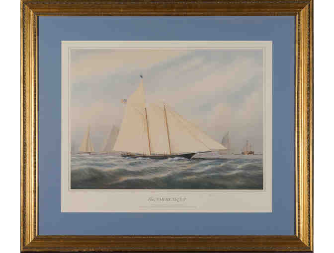 Signed print "The America's Cup, 1851. America defeats the British Fleet" by Tim Thompson