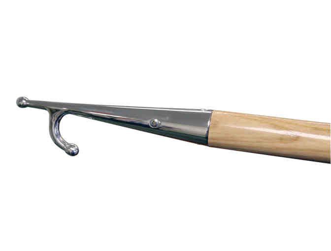 BOAT HOOK 117" These elegantly crafted polished stainless steel boat hooks are set into tapered, native ash poles made here in Maine. Handles are designed to vertically float, should one go overboard.