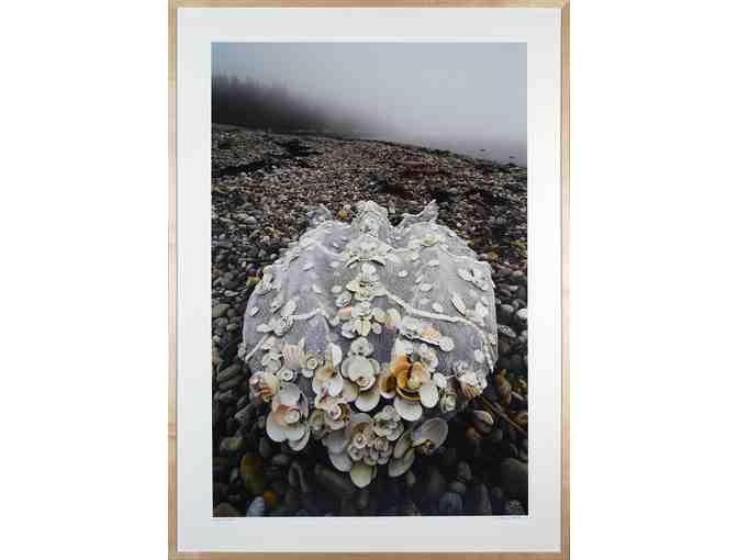 Photograph by Hunter Tighe Snyder of a Brian White wedding veil on a Maine beach