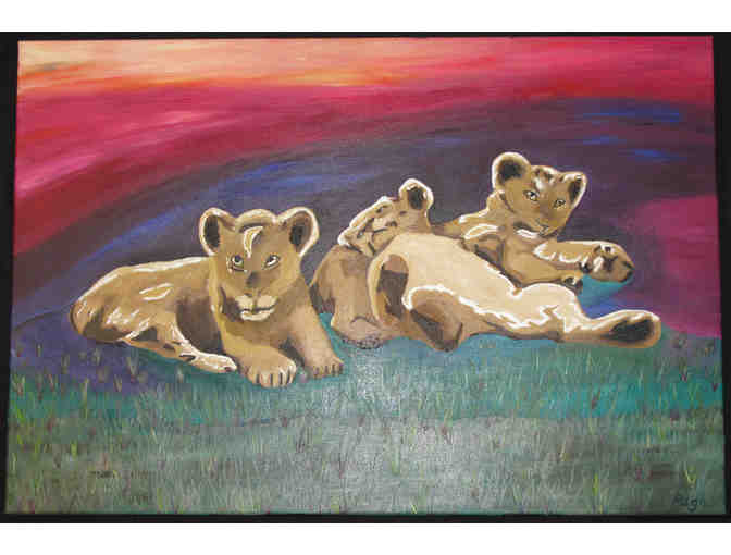 Zoo Atlanta's lion cubs depicted in vibrant color. Canvas is gallery wrapped and hangs without a frame, 36"x24".