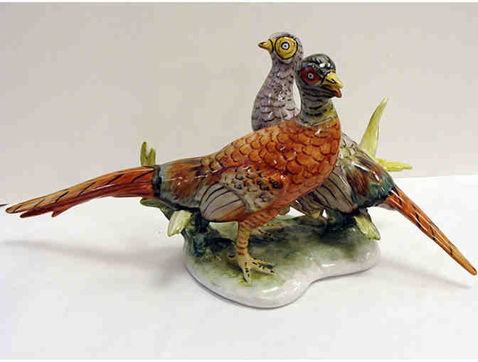 This beautiful rendition of a pair of pheasants is sure to be a conversation piece. Features two ornate and colorful pheasants. Made in Romania, this piece was handpainted and is porcelain.