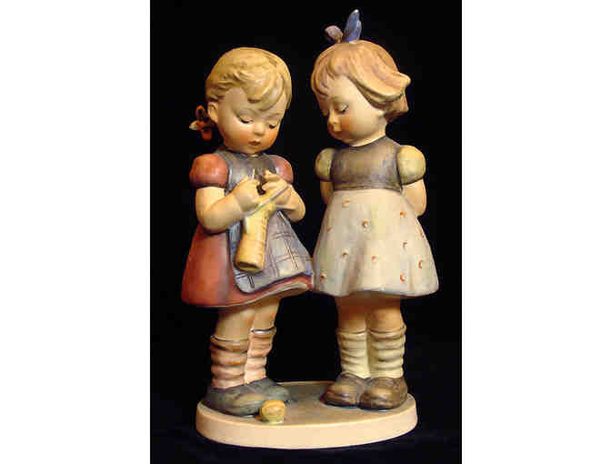 Enjoy the beauty of this adorable and highly collectible Hummel figurine featuring two girls, one knitting and the other watching. Hummel figurines (also known as M.I. Hummel figurines or simply Hummels) are a series of porcelain figurines based on the drawings of Sister Maria Innocentia Hummel, O.S.F.