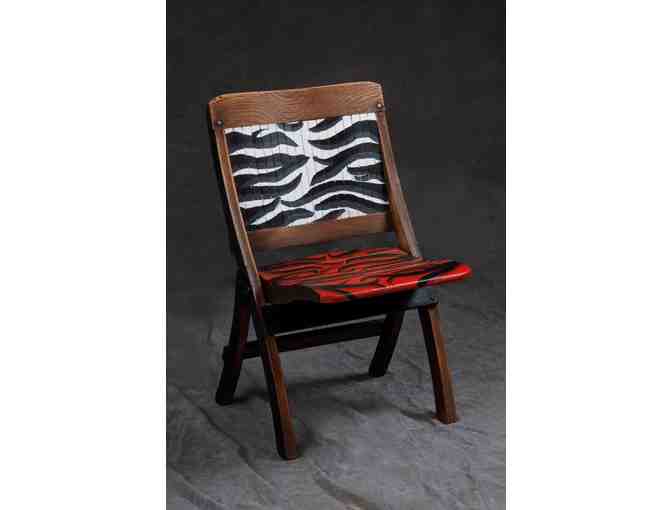 Looking for a pop of color to brighten up your space? The exotic design on this incredible chair makes it as unique as the suggested stripes of a tiger -which like fingerprints, no pattern is alike.  Love it, bid on it, own it!
