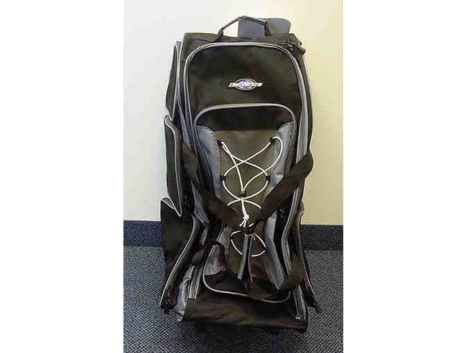 This roomy travel bag by Desitnations Luggage offers external compartments to carry a multitude of essentials, bungee cord for hauling last minute items, retractable handle and in-line skate wheels for smooth mobility, and a handle on the front so it can be carried as a duffel bag.