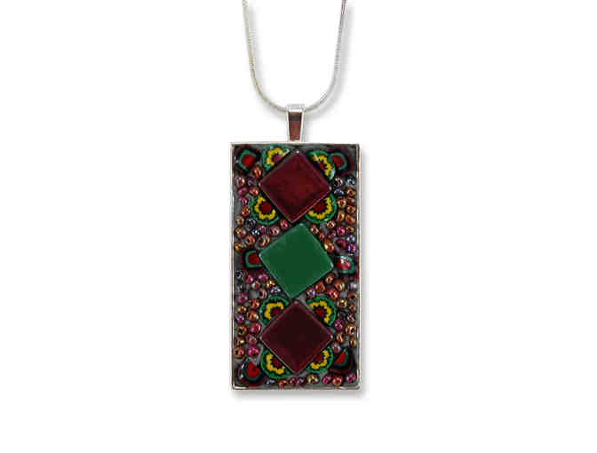 In 2004 Ilona took a workshop in mosaic making which prompted an instant love affair with mosaics. Her newest pieces combine stained glass, millefiori, beads, ball chain, found materials, and handmade tiles.