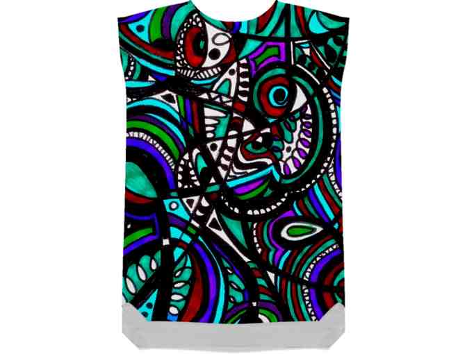 Show off those beautiful legs and float through any event in artified style that will, definitely, get YOU noticed! or... Throw on a pair of jeans, leggings, or leather pants and simply "strut" this work of art anywhere you go!