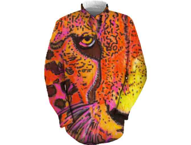 On a more personal experience note: When I ordered the original samples, I could not resist ...I had to wear them, and these art shirts have become my "go to essential" in my wardrobe! I could not begin to even describe how comfortable and versatile they are...with jeans, open with a tank under, or belted...they are color saturated, have long lasting sturdy heft, yet these shirts are so dang comfortable, I keep ordering more! Yes, it is fun..really WAY COOL to WEAR ART!! (WBK)