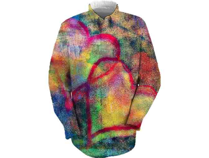 On a more personal experience note: When I ordered the original samples, I could not resist ...I had to wear them, and these art shirts have become my "go to essential" in my wardrobe! I could not begin to even describe how comfortable and versatile they are...with jeans, open with a tank under, or belted...they are color saturated, have long lasting sturdy heft, yet these shirts are so dang comfortable, I keep ordering more! Yes, it is fun..really WAY COOL to WEAR ART!! (WBK)
