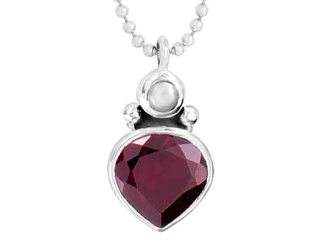 Shine bright with the classic Get Glowing Necklace. It features a rich Garnet and delicate Pearl, a Sterling Silver setting and a Ball Chain. Add a pop of ruby color to a cream blouse and dark denim. Adjusts 17"-19".