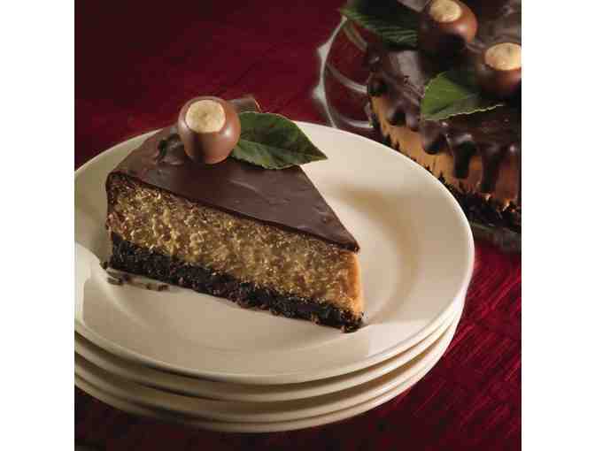 BUCKEYE CHEESECAKE is freshly prepared featuring a Peanut Butter filling with dark chocolate glaze, topped with mini-Buckeye candies; it was a blue ribbon winning recipe at the 2007 Ohio State Fair cheesecake competition.