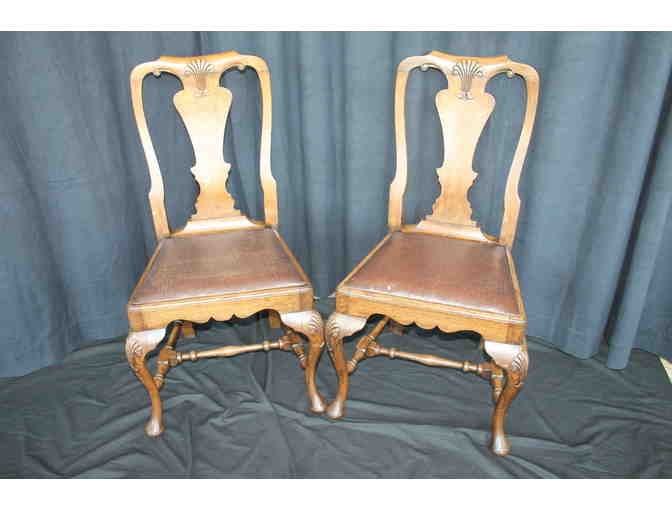 This Set of Four Queen Anne Oak Side Chairs with Shell