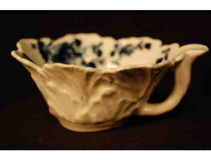 Delicate and highly collectible Worcester blue and white butter boat. English, Circa 1758.