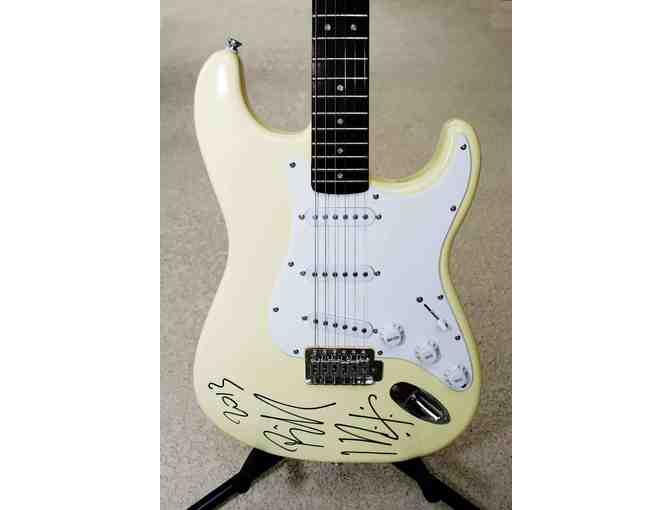 This Fender Squire Bullet Strat guitar was purchased by the Friends of the St. Augustine Amphitheatre (FOSAA). On June 12, 2013, Billy Idol performed at the St. Augustine Amphitheatre and was gracious enough to sign this guitar for us.