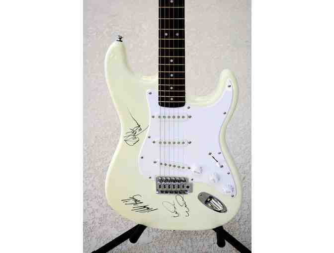 On June 21, 2013, Ralph Johnson, Philip Bailey and Verdine White of Earth Wind and Fire performed at the St. Augustine Amphitheatre and signed this Fender Squire Bullet Strat guitar that was purchased by the Friends of the St. Augustine Amphitheatre (FOSAA).