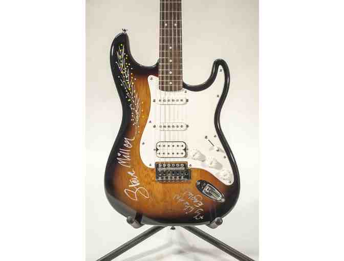 On March 8, 2014, Steve Miller and "The Steve Miller Band" performed at the St. Augustine Amphitheatre. Steve Miller decorated and signed this Fender Squire Bullet Strat guitar for us. The guitar was purchased by the Friends of the St. Augustine Amphitheatre (FOSAA).