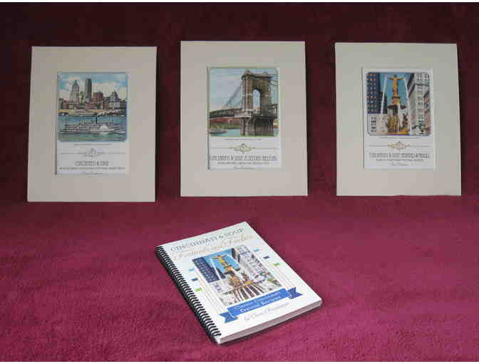 | Cincinnati and Soup Gift Set: (1) autographed copy of Cincinnati and Soup: Festivals and Frolics, by Cheri Brinkman. Recipes from the great SW Ohio festivals plus Ohio State Fair recipes included. (3) limited edition, color, matted prints sized 8"x10" by graphic artist Erin Beckloff. The prints depict the historic Cincinnati riverfront, the Roebling Bridge and NEW this year the Fountain Square. A historic touch for home or office. Cincinnati and Soup books and prints are 100% made in Ohio. |