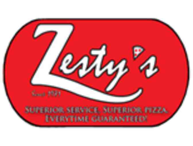 A 25 dollar gift card for Zesty's Pizza restaurant!