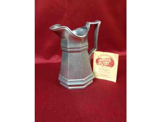 Olde Country Reproduction Pewtarex Octogonal Pitcher. Individually cast in a sand mold and finished by hand. The sand mold is destroyed in the process so each piece is original and created from its own unique mold. Pewtarex is a non-toxic alloy that is safe to serve foods, eat or drink from. The pitcher is approximately 8" x 7".