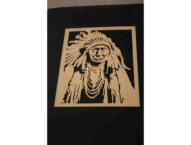 "Chief Joseph" Native American Scroll Saw Plaque in Matte Frame