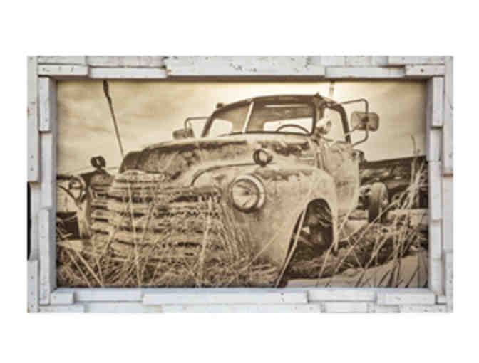 Printed on brushed aluminum with reclaimed pallet wood frame