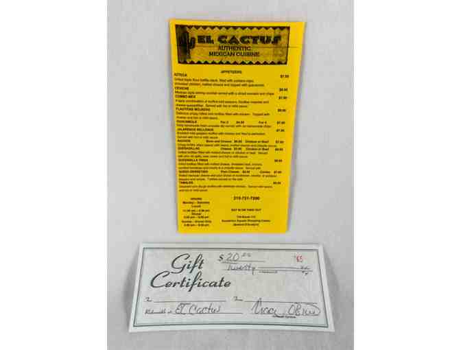 Come and explore some tastey Mexican cuisine. Let your taste buds experience all of the different foods at El Cactus as you use your $20 gift card.