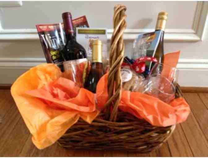 Bid now on this Deluxe Wine Basket - in it is a bottle of Pearmund Cellars 2013 Old Vine Chardonay, a bottle of 2013 Pearmund Cellars Riesling, a bottle of 2011 Pearmund Cellars Ameritage, 4 wine glasses, a copy of Virginia Wine Lovers Magazine, corkscrew and a bag of Golden Nuggets gourmet dog treats Value $100