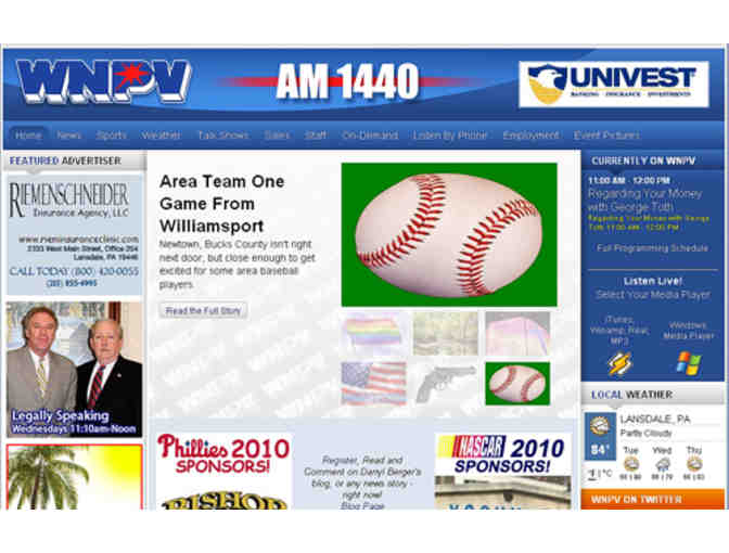 You’ll benefit because even with the growth of new technology like HD and satellite radio, 77% of Americans say they still expect to listen to terrestrial radio as much as they do now (an average of 2 hours and 45 minutes every day!). Plus, WNPV now streams our local programming on our website (www.wnpv1440.com) and many of our local programs are archived for a week or more — including local commercials! Your advertising message will be heard by WNPV’s large audience who depend on WNPV to inform them each and every day.