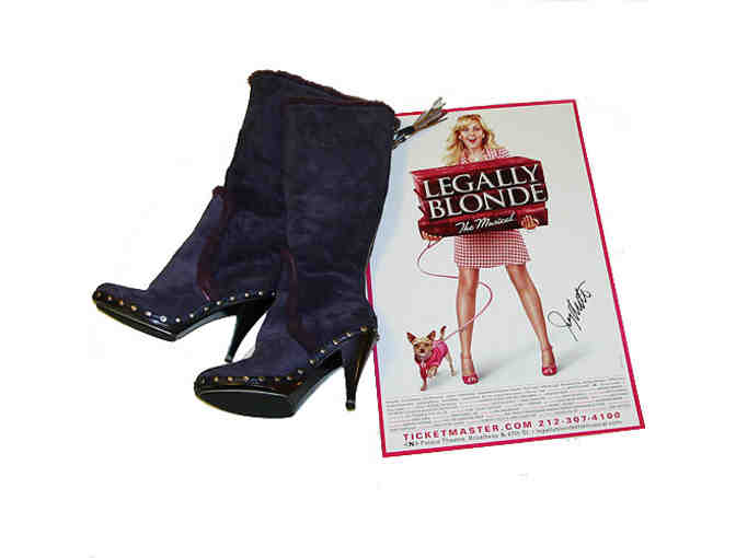 Paulette boots from Broadway production of Legally Blonde, signed and worn by Orfeh (size 9) and Legally Blonde poster, signed by Jerry Mitchell