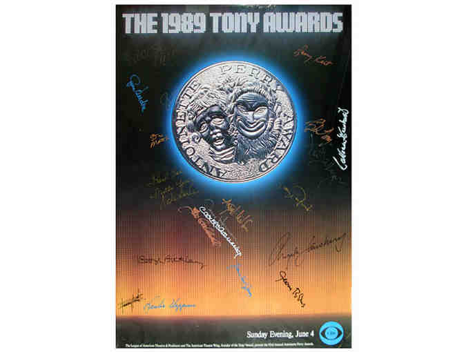 1989 Tony Awards poster, signed by Zoe Caldwell, Carol Channing, Colleen Dewhurst, Jerry Herman, James Earl Jones, Larry Kert, Swoosie Kurtz, Angela Lansbury, Steve Martin, Jerome Robbins, Tommy Tune, Leslie Uggams, Gwen Verdon and more