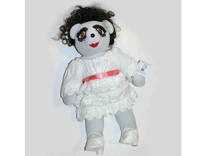 The Pirates of Penzance Broadway Bear and photo. Bear wearing the costume designed for the 1981 production by Patricia McGourty for "Mabel," signed by Linda Ronstadt. Broadway Bear designed by Jan Kastendieck