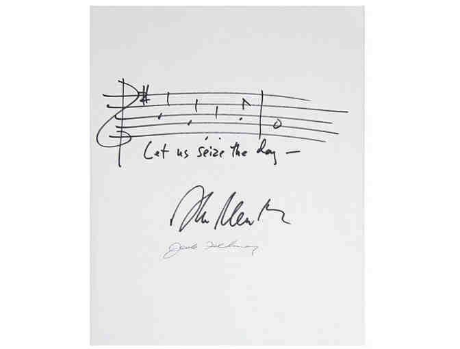"Seize the Day" muscial phrase from Newsies, handwritten and signed by Alan Menken and Jack Feldman