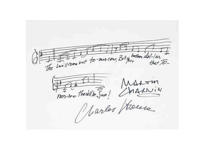 "Tomorrow musical" phrase from ANNIE, handwritten and signed by Charles Strouse and Martin Charnin