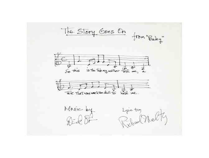 "The Story Goes On" musical phrase from BABY, handwritten and signed by David Shire and Richard Maltby
