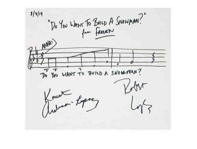 "Do You Want To Build A Snowman?" musical phrase from FROZEN, handwritten and signed by Robert Lopez and Kristen Anderson-Lopez