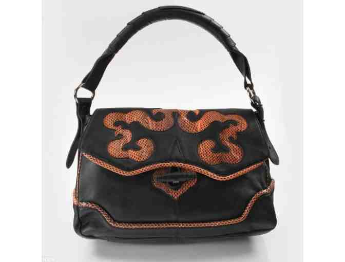 **Black Lambskin with Embossed Snake Skin Handbag by Designer Nina Raye!
