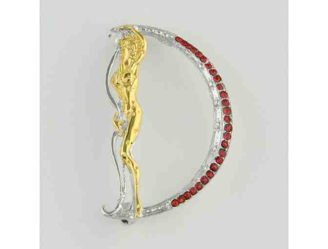 THIS IS YOUR GOLDEN OPPORTUNITY TO OWN A GENUINE ERTE ART DECO CREATION! From an original design by the “Father of Art Deco”, Erte’s famous “Alphabet” series was first a Suite of Serigraphs and then a priceless collection of figures cast in precious metals set with gemstones. We are pleased to present this sparkling Pendant/Brooch depicting the letter “D”, made of solid gold-plated Sterling Silver and hand-set Swarovski crystals, cast from the same mold used to create the original! This piece comes in a simple and pretty gift box with the Erte stamp on it. Officially Licensed by the Estate of ERTE, bearing the official stamp of his signature! Measures approx. 1.5" x 1", 3.6 grams (weight).