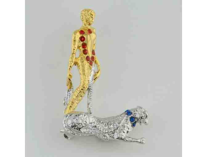 From "The Father of Art Deco" ERTE! Dazzling "L"-shaped Pendant/Brooch, made of Gold Plated Sterling Silver, with Hand-Set Swarovski crystals!
