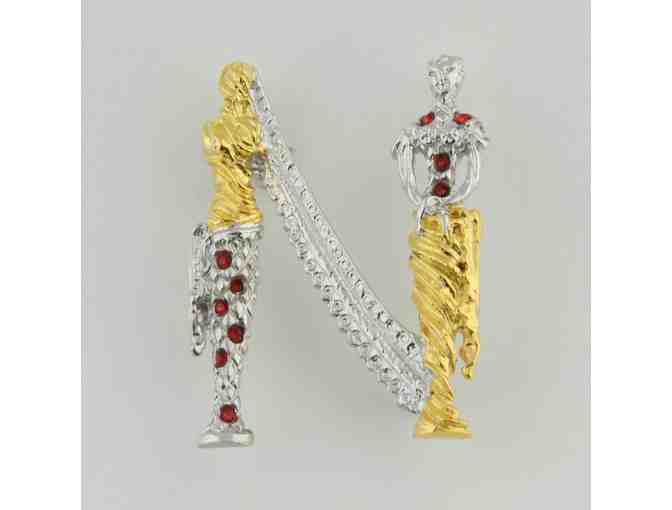 From "The Father of Art Deco" Erte! Dazzling "N"-shaped Pendant/Brooch, Made of Gold-Plated Sterling Silver, with Hand-Set Swarovski Crystals!