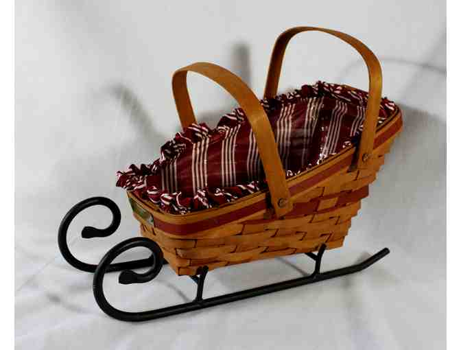 A personal favorite, this basket may look like an ordinary basket, but when placed on the stand, it becomes extraordinary. It is transformed into a sleigh and may be a topic of conversation at any holiday get together.