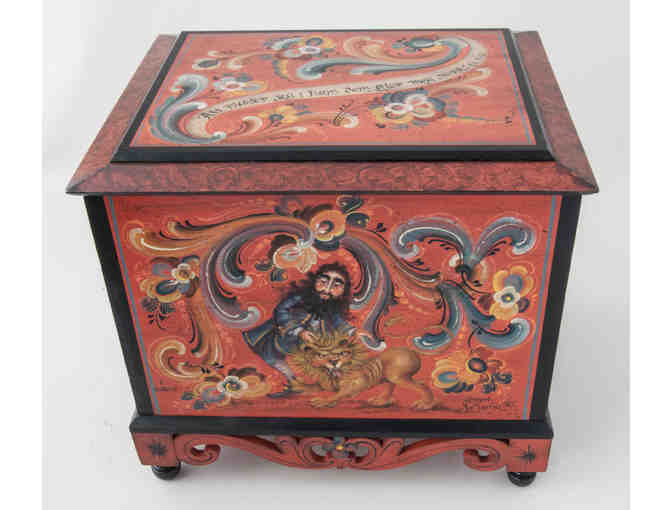 Chest with Telemark Rosemaling featuring Samson and the Lion by Jo Sonja Jansen