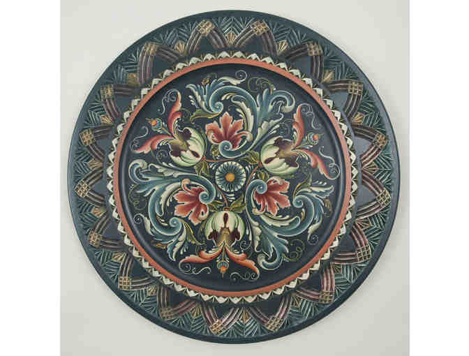 Plate with Gudbrandsdal Rosemaling and Chip Carving by Judy Ritger