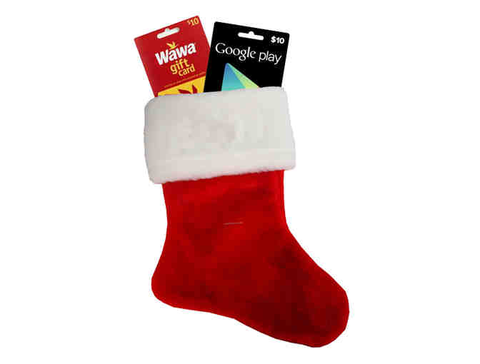 Thinking of ideas for stocking stuffers? Gift cards are a great stuffer for anyone. Included in this item are a $10 Google Play gift card good for downloading apps, movies, music, books and more. And while you're downloading, enjoy a cup of coffee or treats with the $10 Wawa gift card.