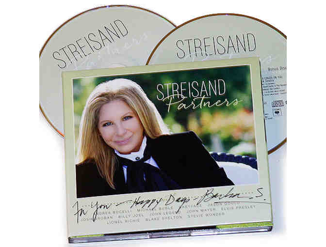 PARTNERS, 2014: The latest recording and second duets album from one of the most loved singers of all time and the best-selling female recording artist ever. The songlist features Ms. Streisand and an outstanding roster of male guest performers including “New York State of Mind” with Billy Joel, “It Had to Be You” with Michael Buble, “People” with Stevie Wonder, closing with “Love Me Tender” with the late Elvis Presley. Have it first and have it signed by Ms. Streisand.