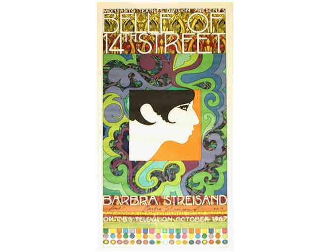 BELLE OF 14th STREET, 1967: Ms. Streisand’s third television special for CBS, following her debut My Name Is Barbra in 1965 and Color Me Barbra in 1966. A rare poster created for the event by artist Tim Lewis, signed by Ms. Streisand.