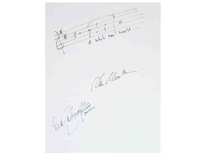 A Whole New World musical phrase from Broadway's Aladdin, handwritten and signed by Alan Menken and Lea Salonga, the original movie Jasmine